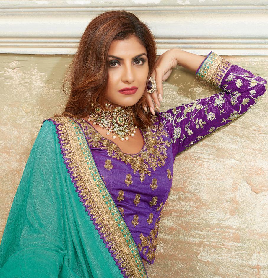 Rama Green & Lavender Color Crepe Silk Designer Festive Sarees : Raviya Collection OS-92929