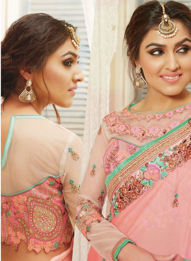 Peach & Pink Color Chiffon Designer Embroidered Sarees : Avnira Collection OS-92895