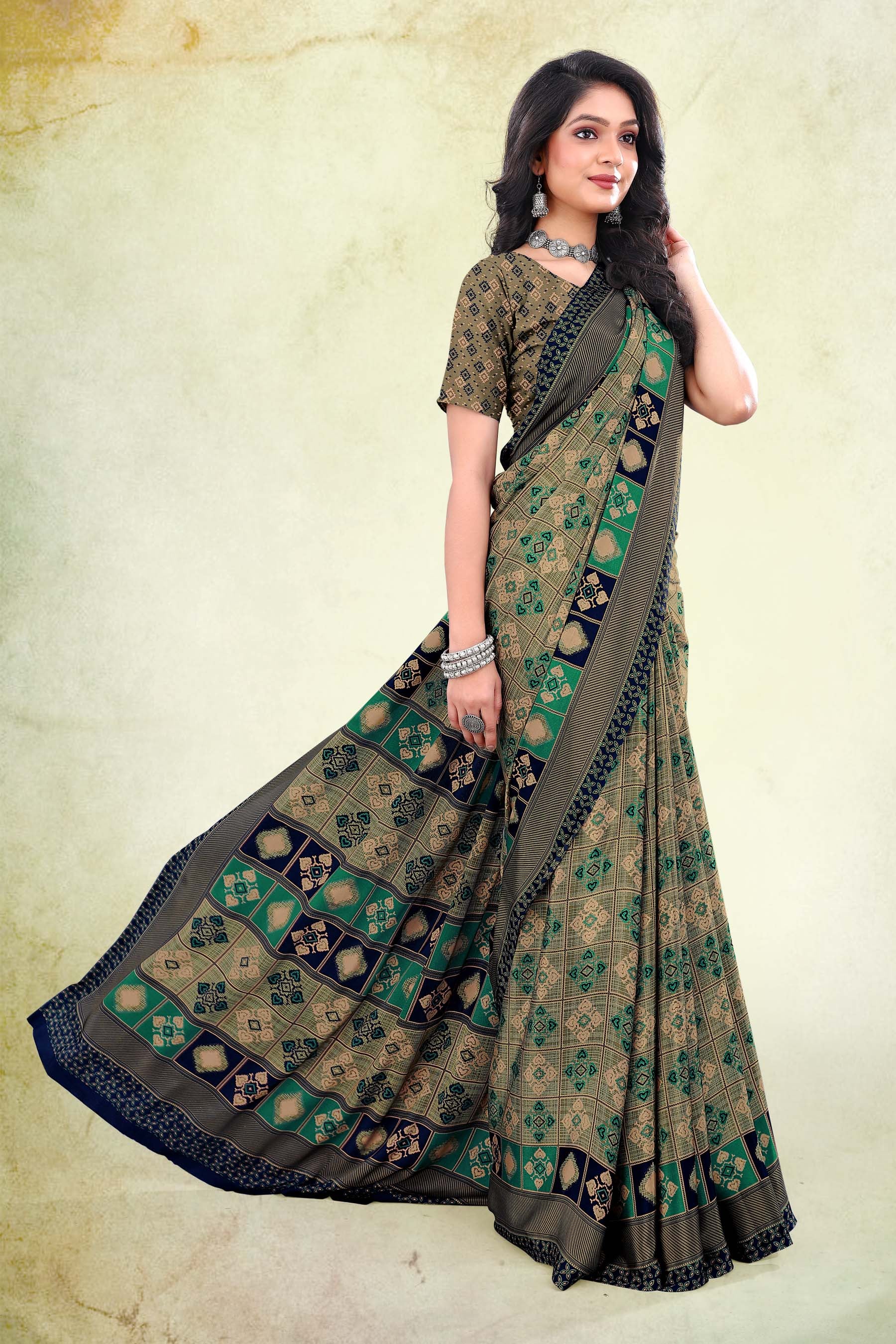 Green Color Crepe Casual Wear Saree Sy - 9357