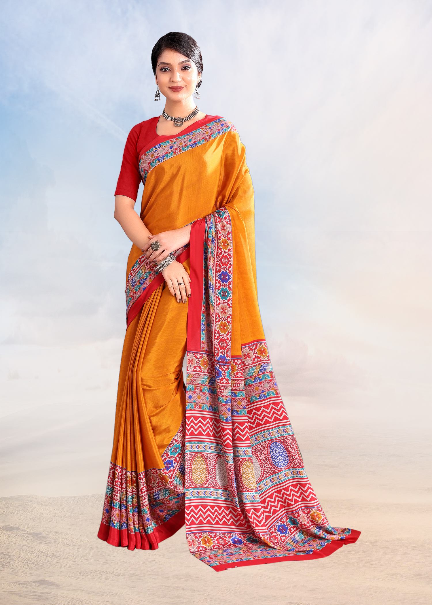 Orange Color Crepe Silk Casual Wear Saree Sy - 9870