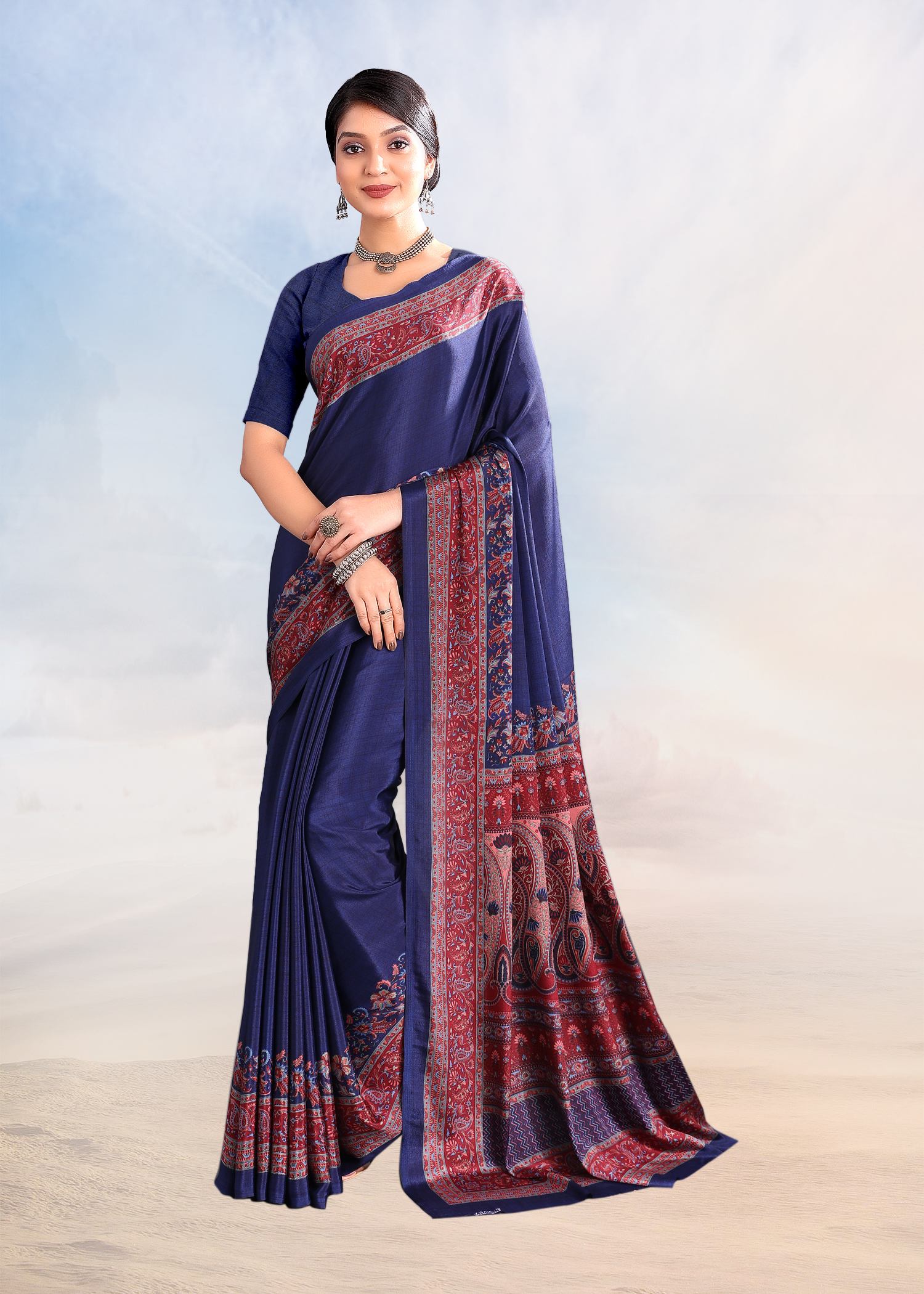 Navy Blue Color Crepe Silk Casual Wear Saree Sy - 9834