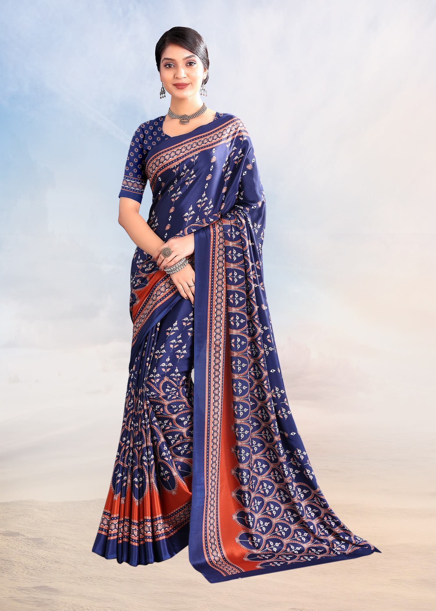 Navy Blue Color Crepe Silk Casual Wear Saree Sy - 9866