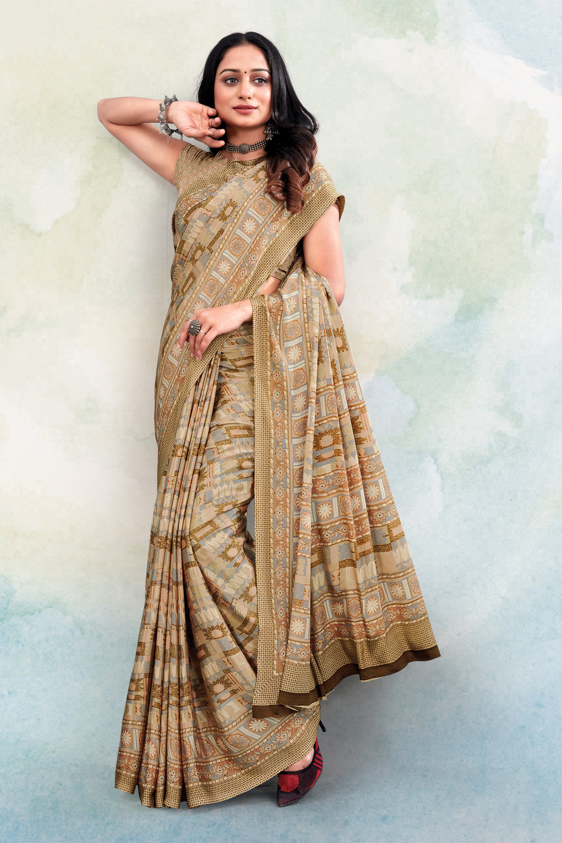 बेज कलर क्रेप कैजुअल वियर साड़ी एसवाई - 9111