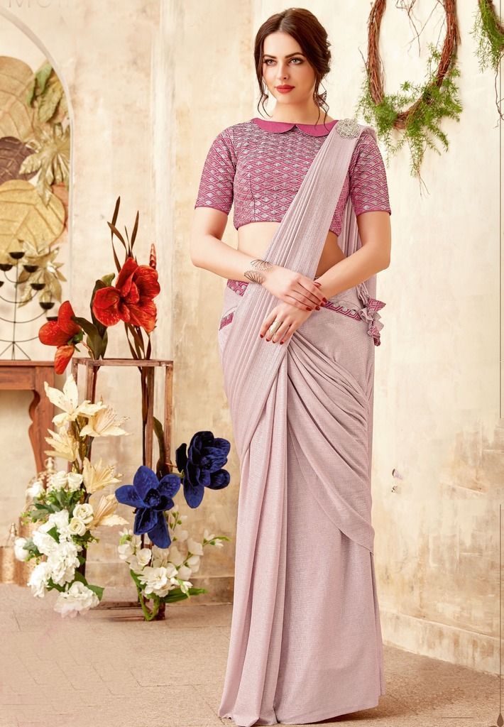 लैवेंडर कलर लाइक्रा डिज़ाइनर रेडी टू वियर साड़ी: साधिक कलेक्शन OS-91724