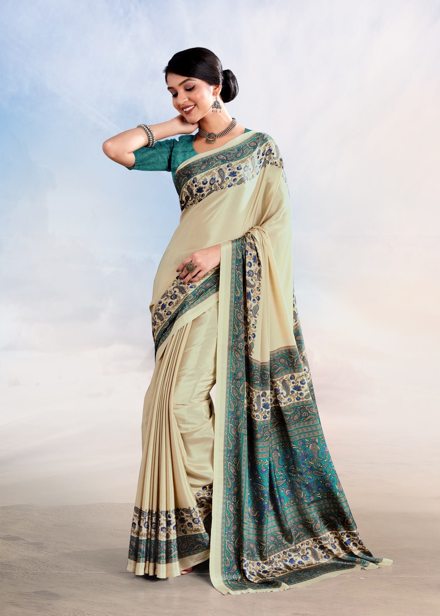 Cream Color Crepe Silk Casual Wear Saree Sy - 9844