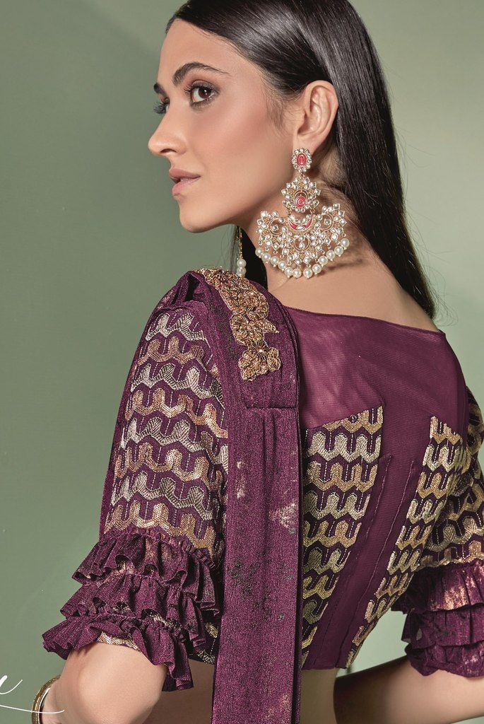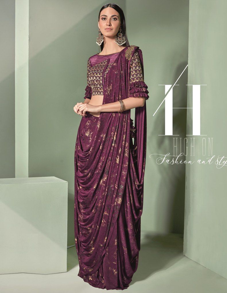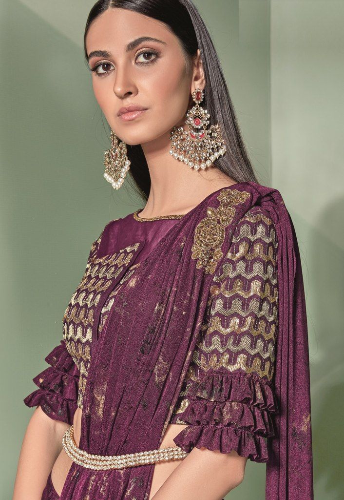 పర్పుల్ కలర్ లైక్రా డిజైనర్ చీరలు ధరించడానికి సిద్ధంగా ఉంది : సాధిక్ కలెక్షన్ OS-91748